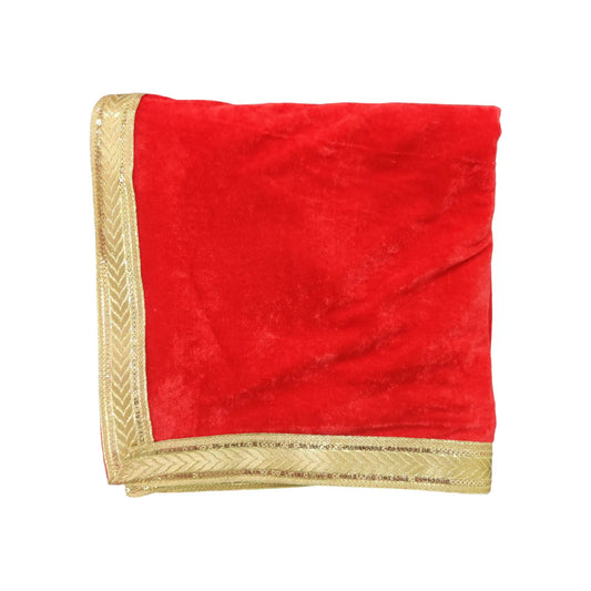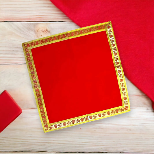 Red Velvet Chowki Aasan | Swastik Lace Velvet Aasan For Temple and Other Puja Rituals