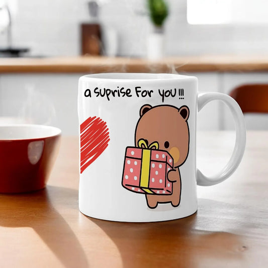 Goma Peach Surprise Cute Printed Mug to Gift for Married Couple Girlfriend Boyfriend Anniversary Gift