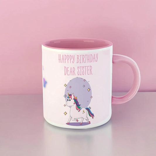 Happy Birthday Sister Printed Pink Inner Colour Ceramic Coffee Mug Best Gift for Sister