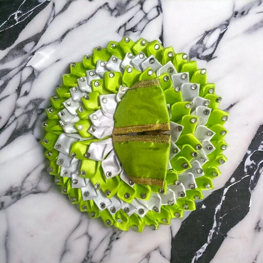 Available in two size options (4 and 5), these outfits are tailored to fit Laddu Gopal idols of different heights. To ensure the right size, simply measure your deity’s height using a measuring tape before selecting the appropriate dress. - Premium Quality Fabric & Craftsmanship: Each dress is meticulously crafted using high-quality cotton and jari fabric, providing comfort and durability. The intricate handwork features colorful stones and fine embellishments, adding a touch of royalty and devotion to your Kanha Ji’s appearance.