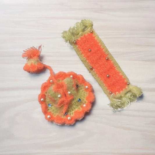 Laddu Gopal Woolen Winter Dress with Shawl | Bal Gopal Woolen Dress (Graan & Orange) | Kanha Ji Winter Dress (Size 2,4) Set of 2
