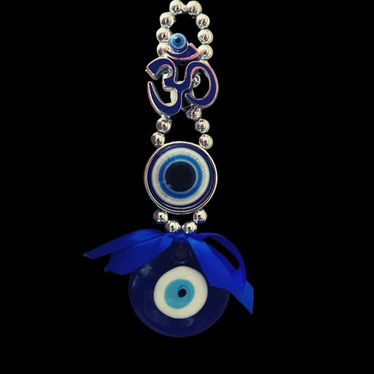 Hanging OM Evil Eye for Car & Door/Office Hanging Good Luck and Prosperity (Color : Silver & Blue)