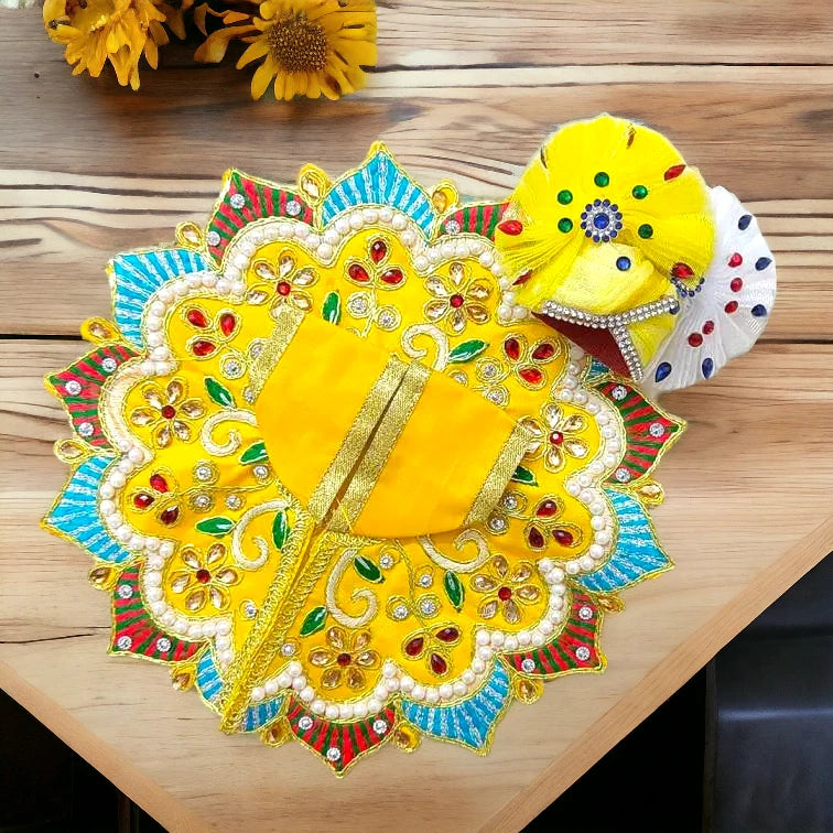 Traditional and elegant, this Kanha ji Dress With Pagdi is perfect for Thakur ji devotees during festivals and occasions like Radha Ashtami, Sharad Poornima, Rakshabadhan, Janmashtami, Diwali, Holi, and more. Ideal for all celebrations.