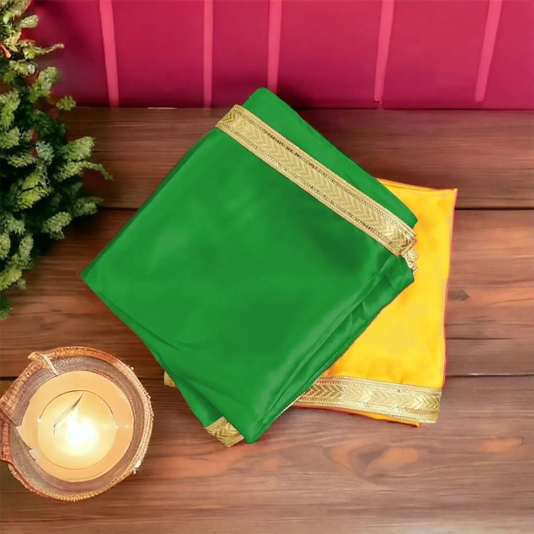 Enhance the beauty of your mandir with our Pooja Cloth. Made from high-quality material, it serves as a decorative piece while also providing a clean surface for poojas. Versatile and multi-purpose, this cloth is a must-have for all your religious and spiritual needs. Available in green and yellow.